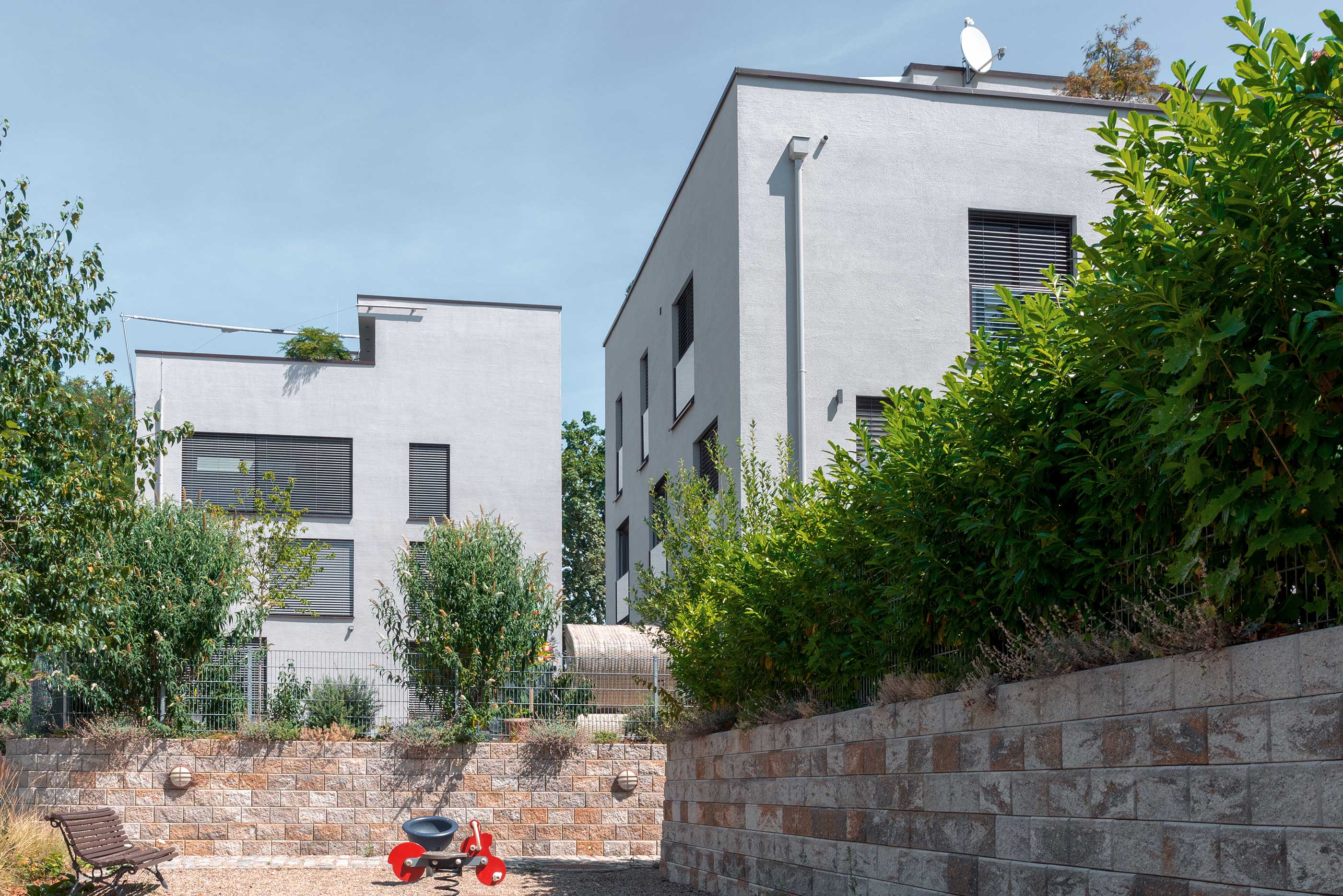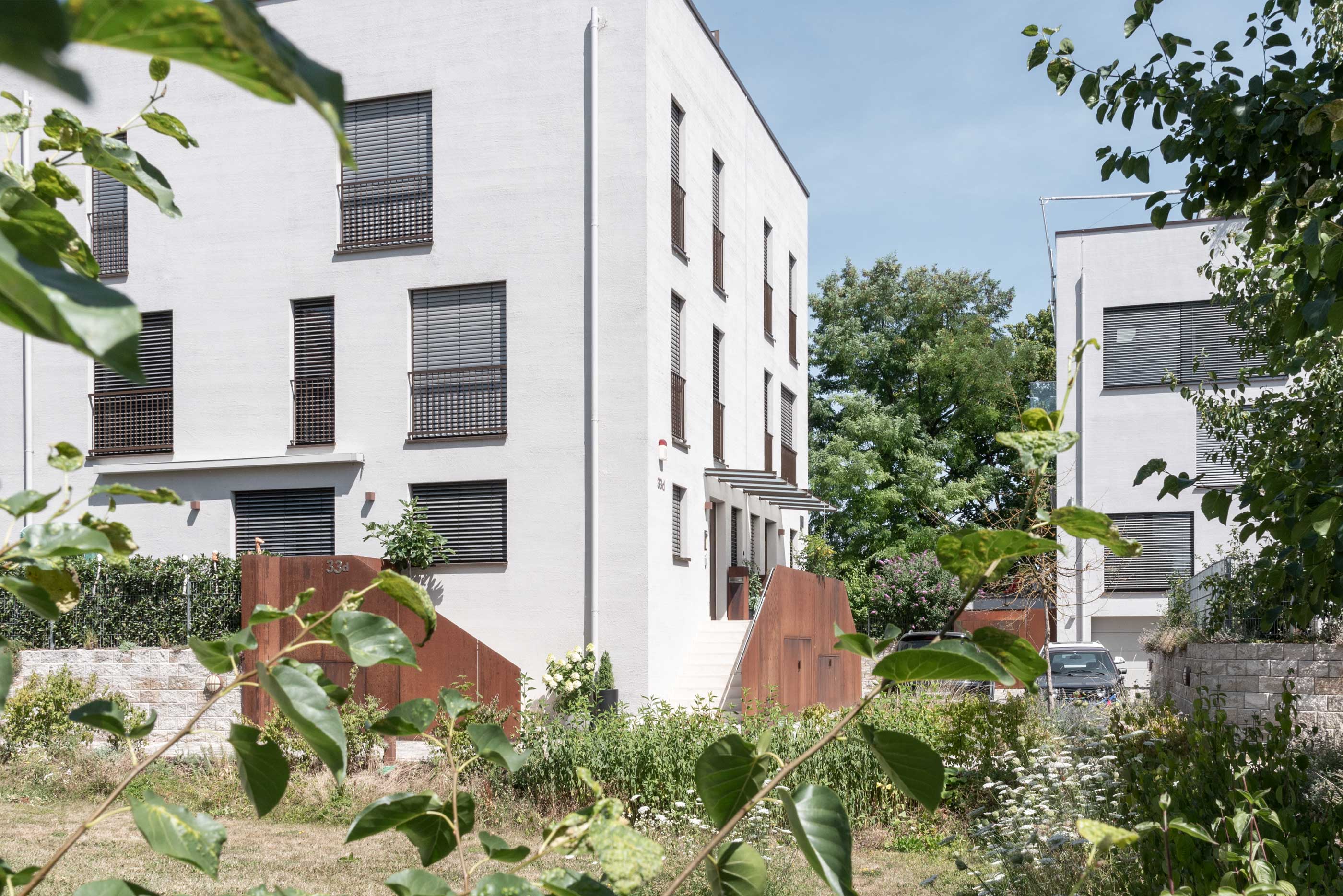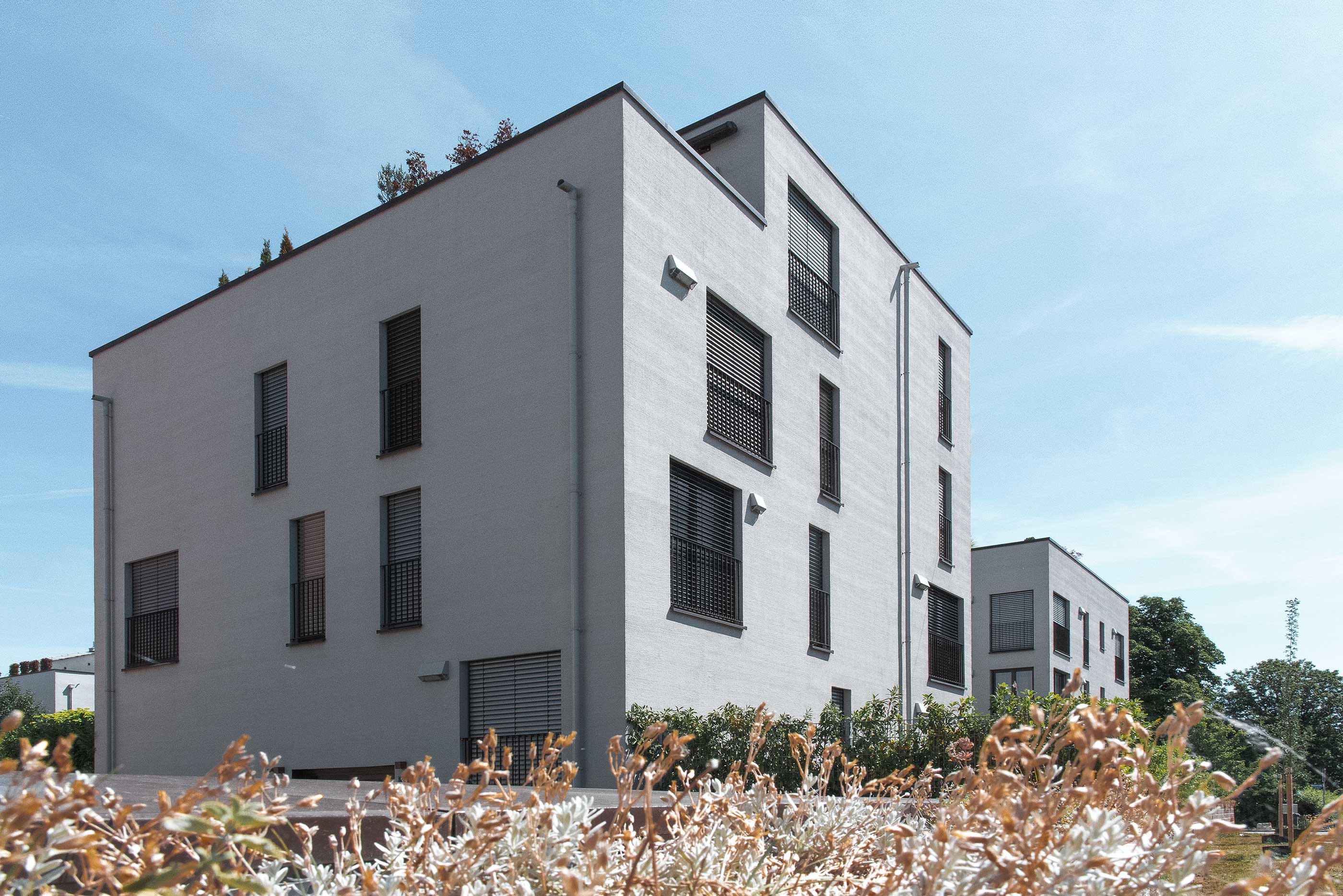 Für diese Einzelhäuser, Doppelhäuser und Mehrparteienhäuser wurden von uns Holz-Alu Fenster in Fichte gefertigt und montiert. Die flächenbündigen und flächenversetzten Aluschalen wurden einheitlich in RAL 8014 Feinstruktur beschichtet. Die Farbgestaltung innen wurde nach Kundenwunsch in Naturfarbton, RAL Tönen und Lasurtönen ausgeführt. Dreh-Kipp-Fenster, Dreh-Kipp-Türen, Festverglasungen und Schiebetüren sind mit Wärme- /Schallschutzglas und elektrischen Raffstoranlagen ausgestattet.